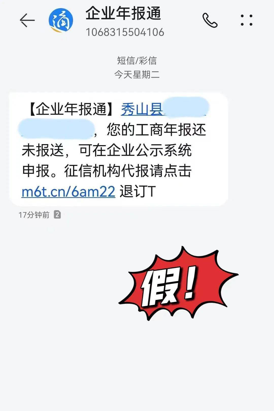 - 短信收到企业年报通
