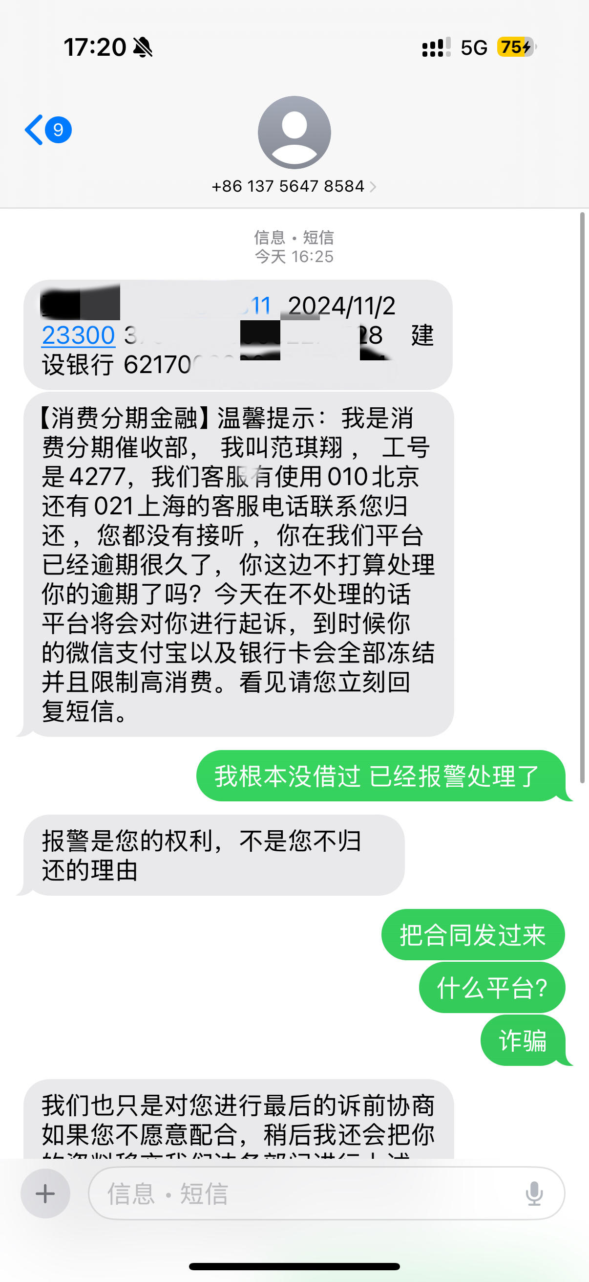 - 收到1068发的催收短信说要上门