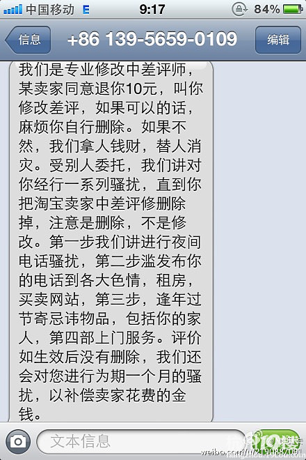 - 淘宝发短信要好评说考核