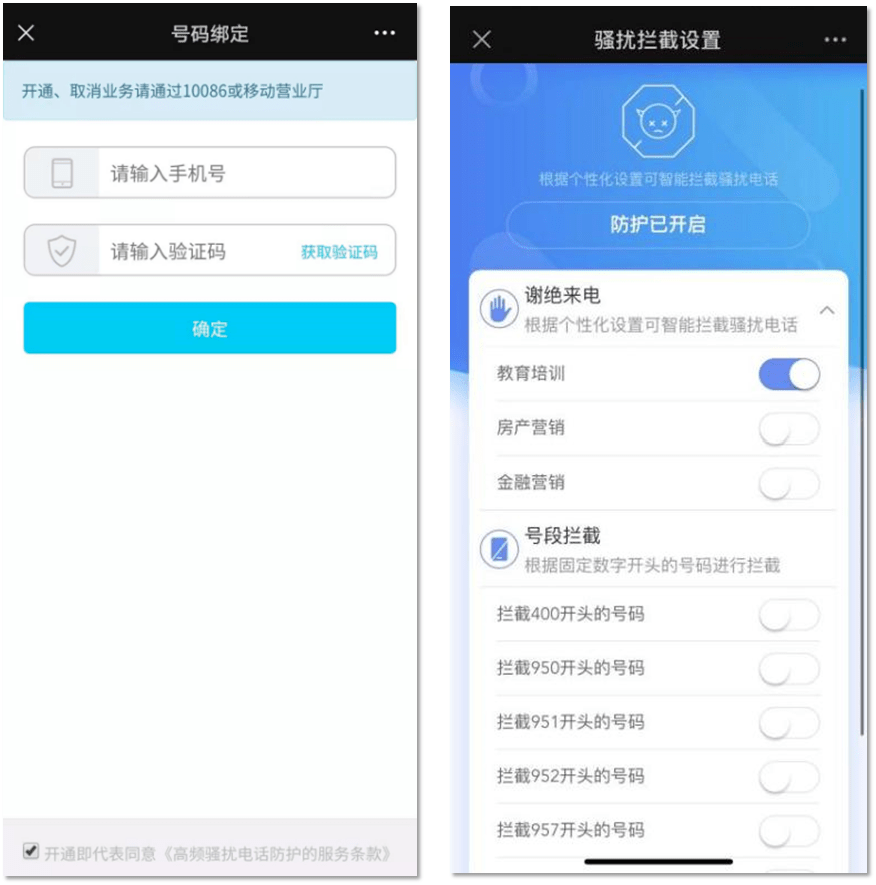 - 移动骚扰电话拦截