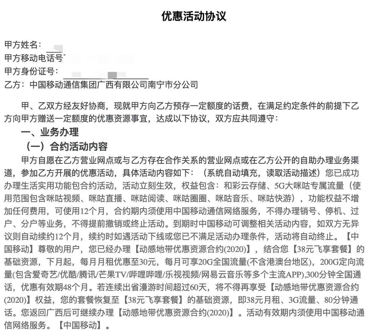 - 移动短信合约活动