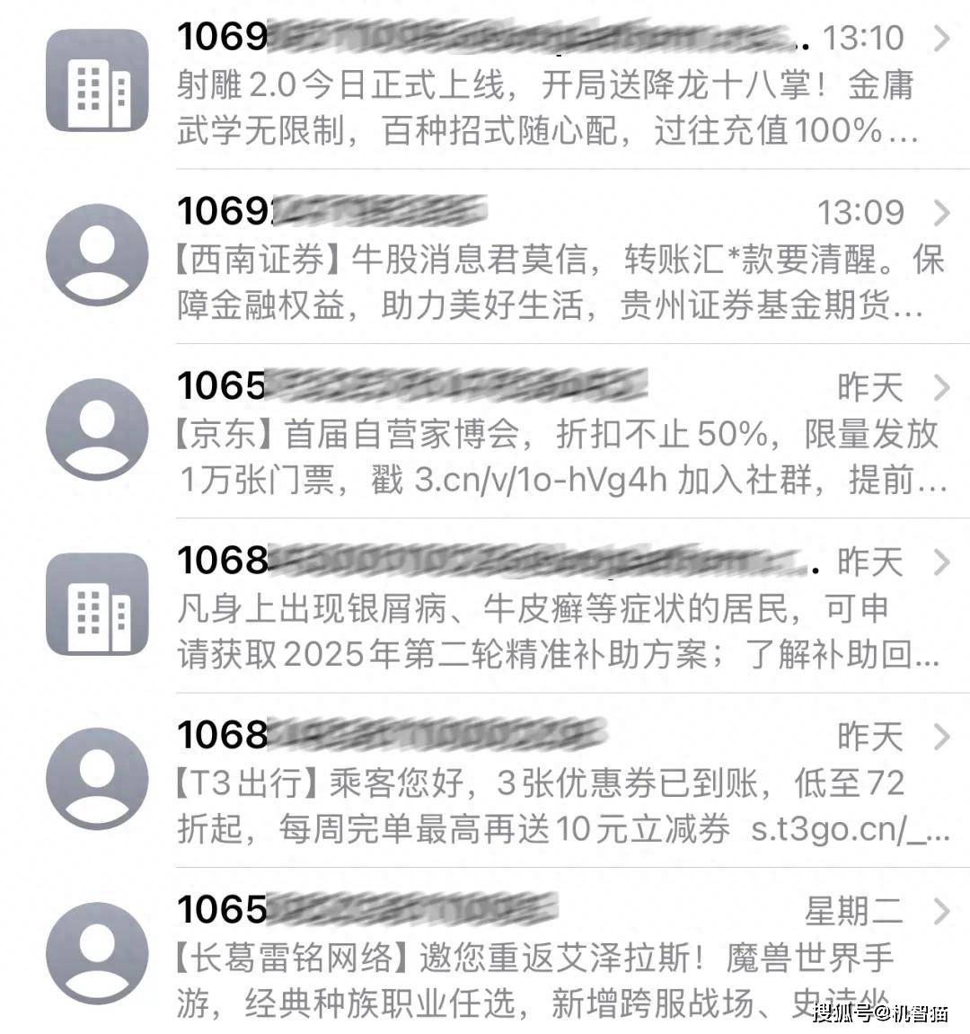 - 短信收到手游内部号
