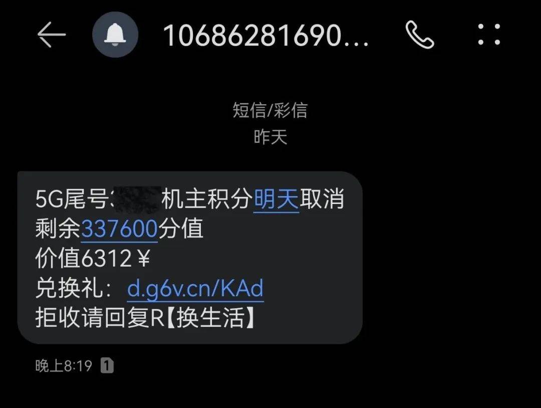 - 短信提醒积分兑换我点链接应该没事吧