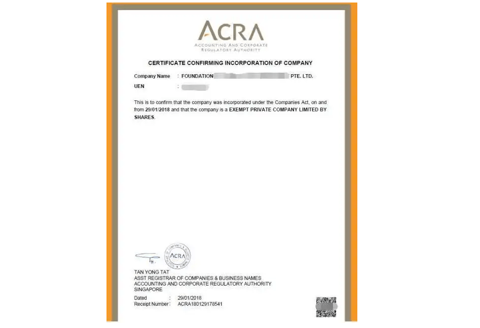 - 新加坡公司注册证书样本