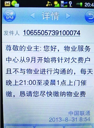 - 物业催费短信内容