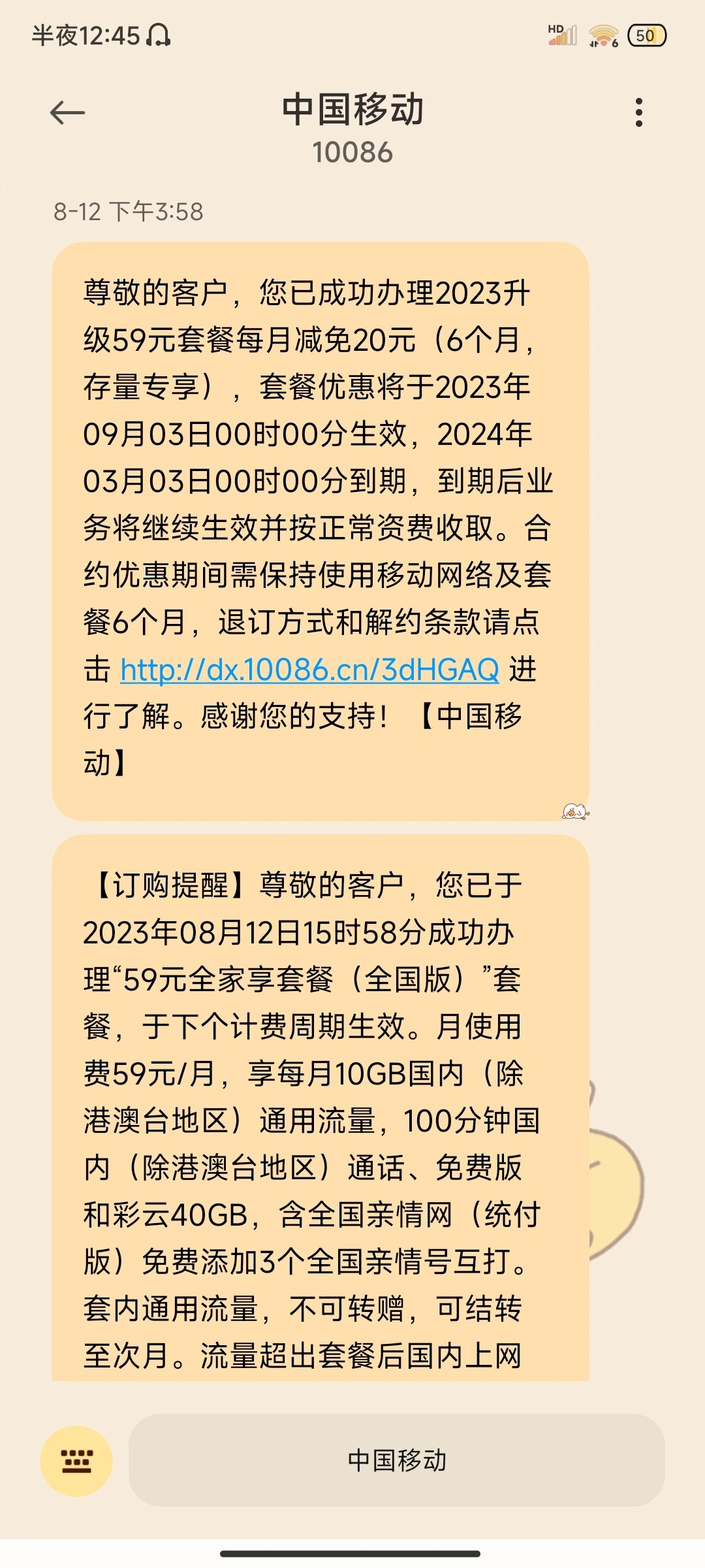 - 中国移动套餐办理短信代码是多少