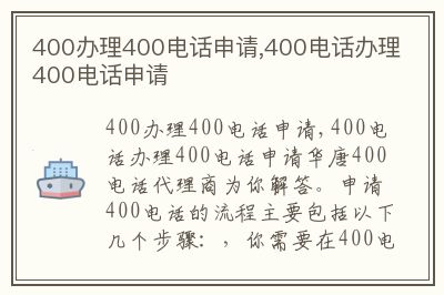 - 申请400电话需要多久