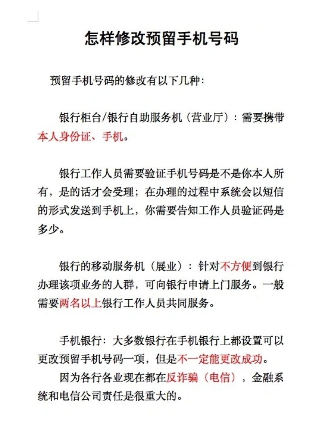 - 信用社更改预留银行手机号码