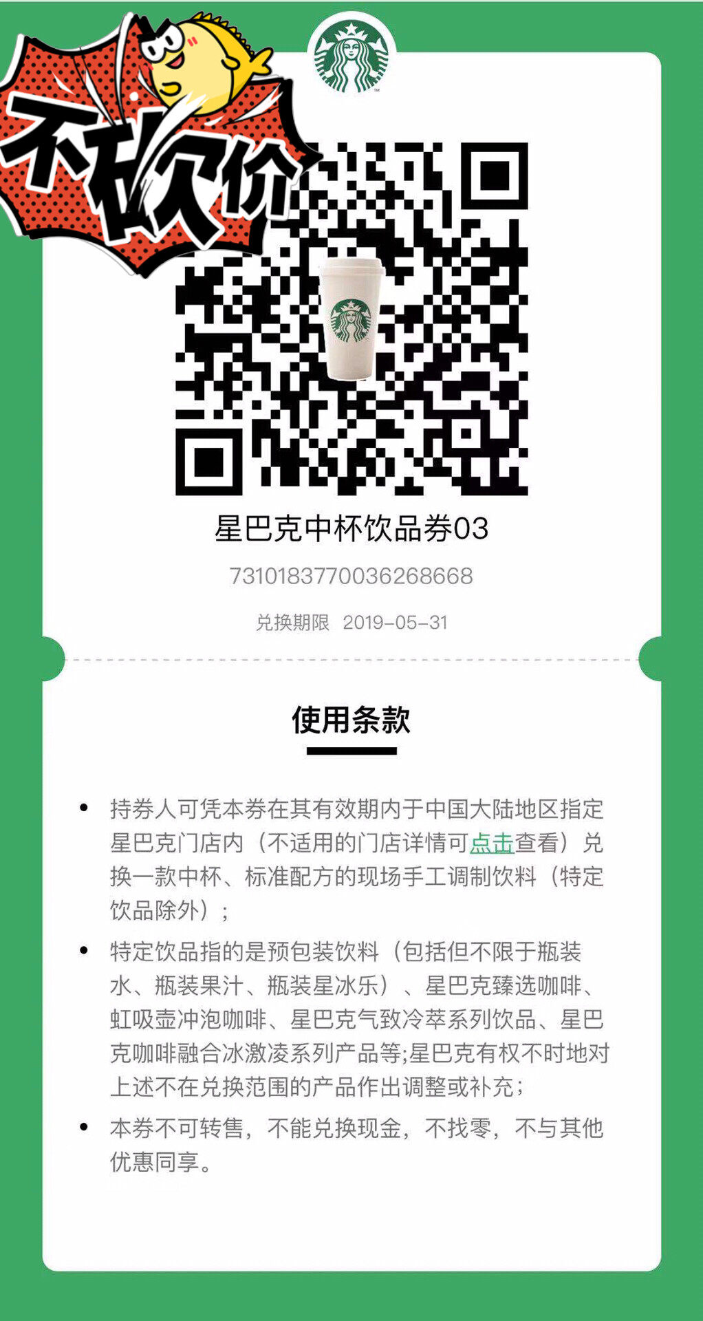 - 短信收到星巴克饮品半价券