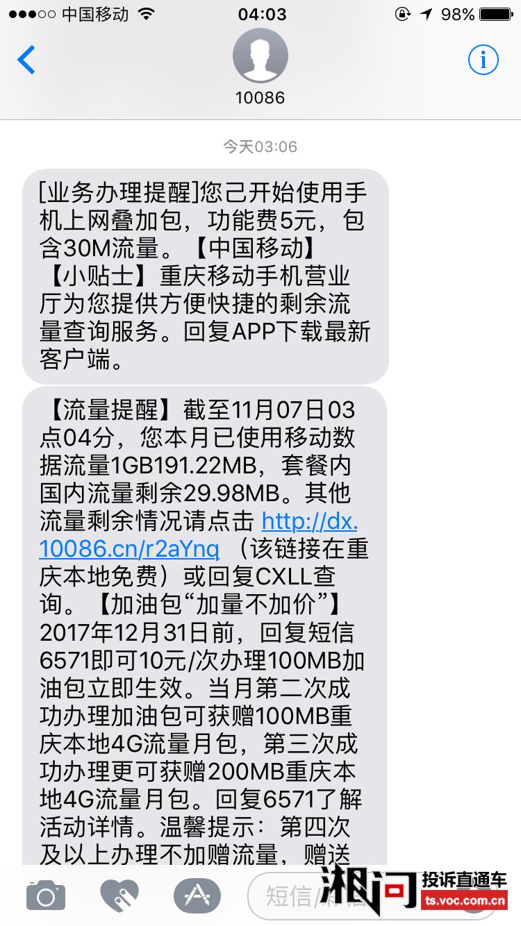 - 移动流量套餐开通短信提醒