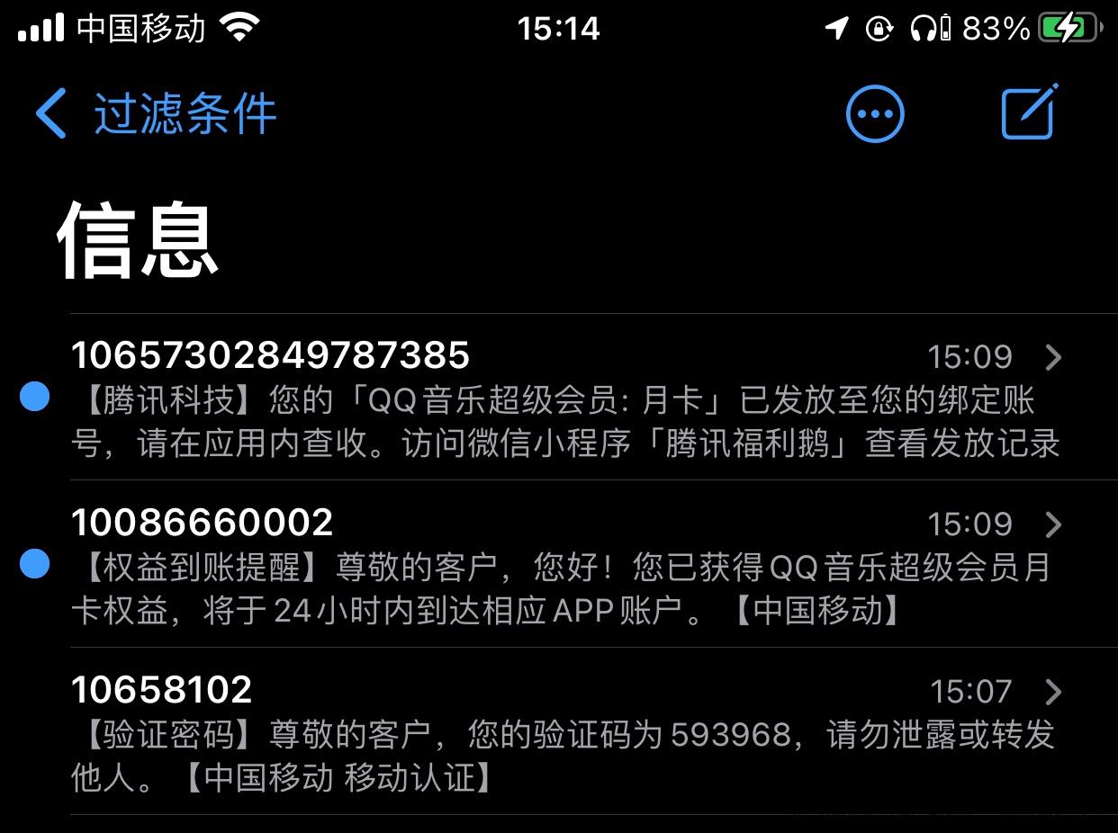 - 中国移动领取会员权益的短信能相信吗
