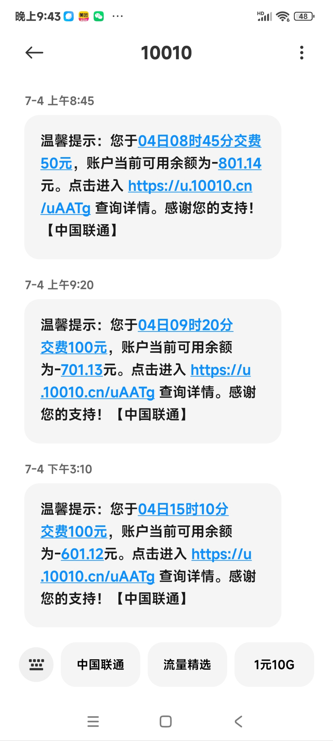 - 中国联通短信大面积故障
